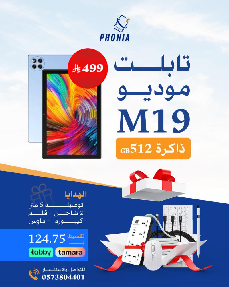 احصل على تابلت موديو M19 من متجر Phonia وتمتع بتجربة تقنية شاملة تجمع بين الأداء العالي والملحقات المتكاملة لكل احتياجاتك